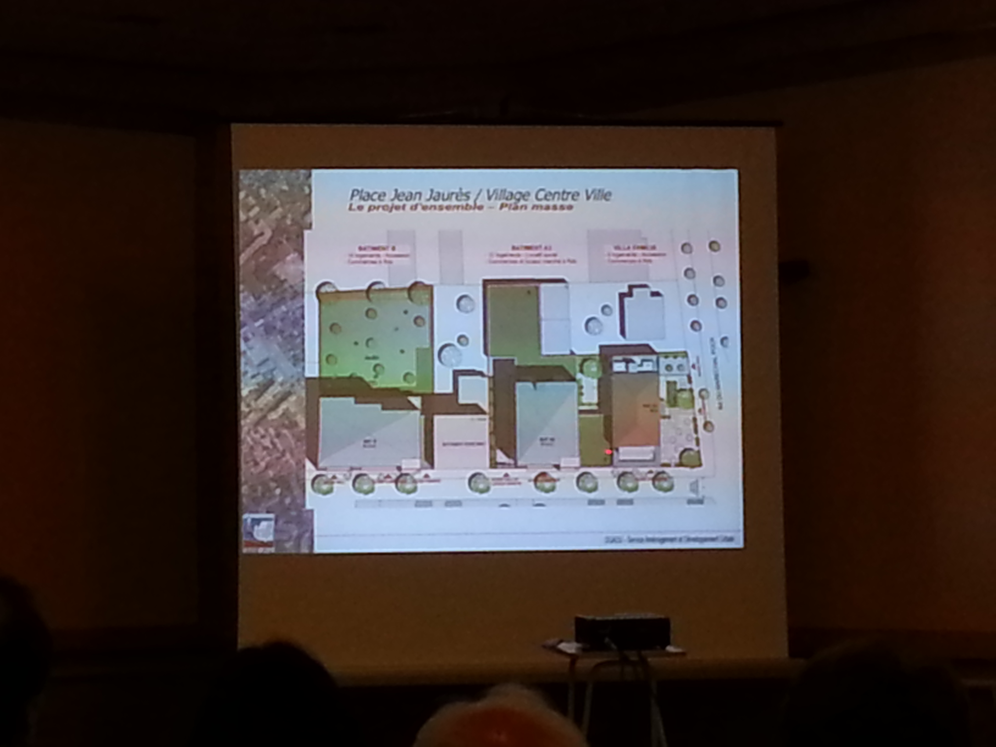 Jeudi 10 juillet 2014 s’est déroulée en mairie centrale une réunion d’information sur le projet d’aménagement de la villa Familia et de la place Jean Jaurès prévu par la ville. Le maire préside la séance en compagnie de Monique Bouteille, adjointe en charge de l’urbanisme. Sont présents également l’architecte et le représentant de Pitch Promotion le promoteur choisi pour cette opération immobilière.