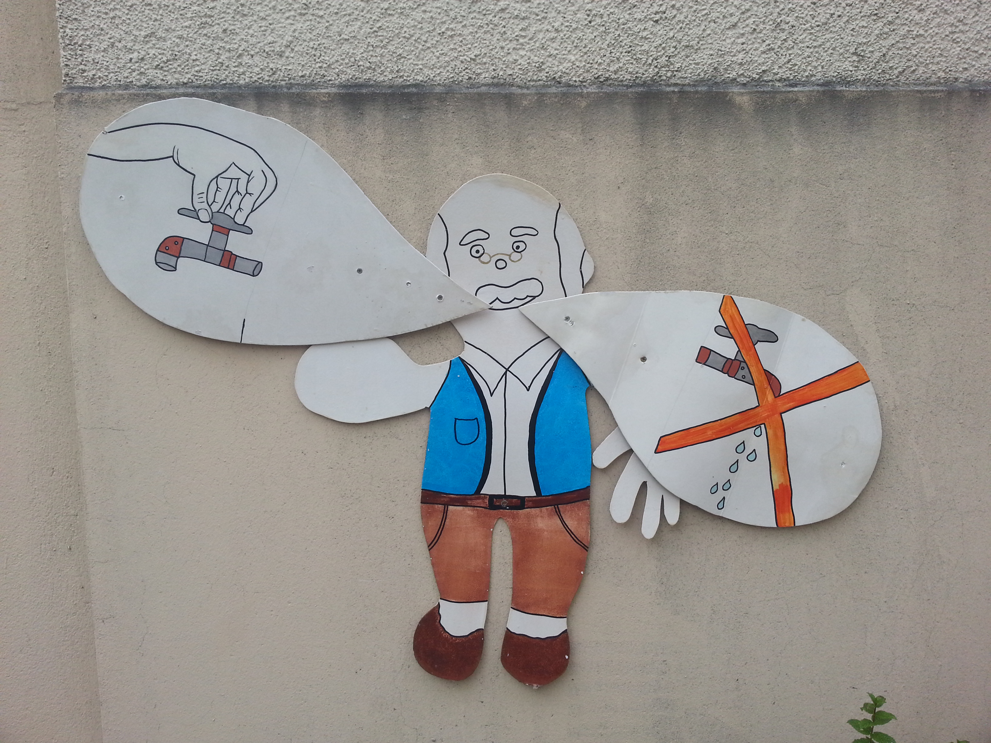 Les enfants sont sensibilisés aux gestes durables par l’entremise de Papystache, la mascotte de la crèche qui leur rappelle les bonnes pratiques au sein de la crèche.