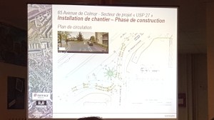 Le maire explique que le projet est en discussion depuis 2 ans, qu’il a fait l’objet de nombreuses itérations architecturales (qui nous sont présentées) et qu’en l’état actuel des choses il ne peut refuser de signer le permis de construire s’il lui est présenté par Eiffage. Vous verrez ci-dessous le planning prévisionnel des travaux.