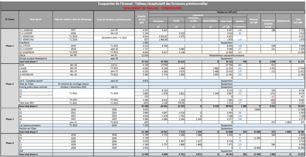 Or je me suis procuré un document récent produit par la mairie et qui détaille les projets de construction sur la ZAC de l’Arsenal.